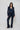 pantalone zampa con bustino in raso. chiusura zip laterale