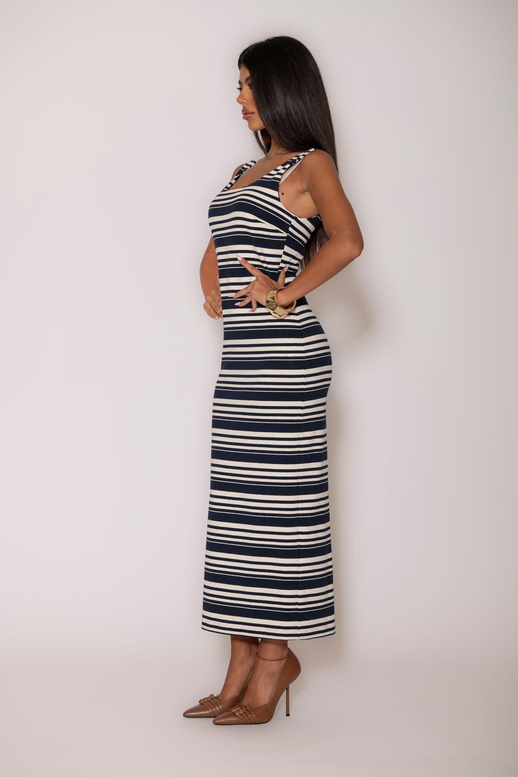 Scollo tondo con spalline larghe e scollatura profonda sulla schiena